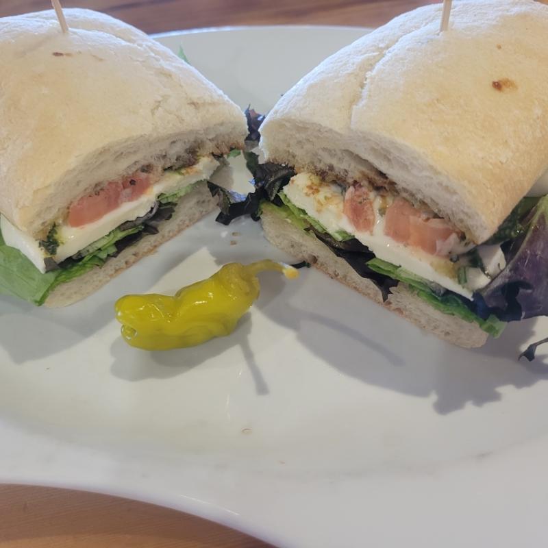 Prosciutto, capicola, salami, sweet peppers, roasted red peppers, Kalamata olives, provolone cheese, pepperoncini, fresh mozzarella, tomatoes, olive oil, balsamic reduction, and Italian seasonings.